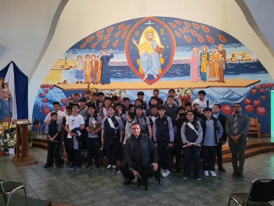 La ceremonia religiosa, que fue presidida por el Padre Director, Juan Bustamante Zamorano, contó con la presencia de estudiantes, maestros, padres, apoderados e integrantes de la Banda de Honor, Banda Instrumental, Coro y Taller de Guitarra del establecimiento.